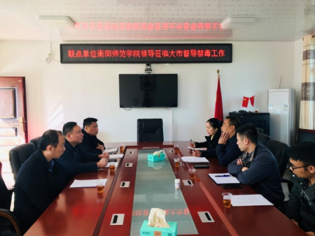 12月1日,yL23411永利集团官网登录纪检监察处宋科处长、保卫处周松青处长一行人,到耒阳市大市镇督导交流禁毒工作。大市镇禁毒工作负责人汇报了全镇的禁毒工作情况,并详细介绍了开展禁毒工作的经验和做法,yL23411永利集团官网登录一行人高度评价和充分肯定大市镇的禁毒工作,并针对如何加强双方联动吹响新时代衡阳禁毒人民战争提出建议。